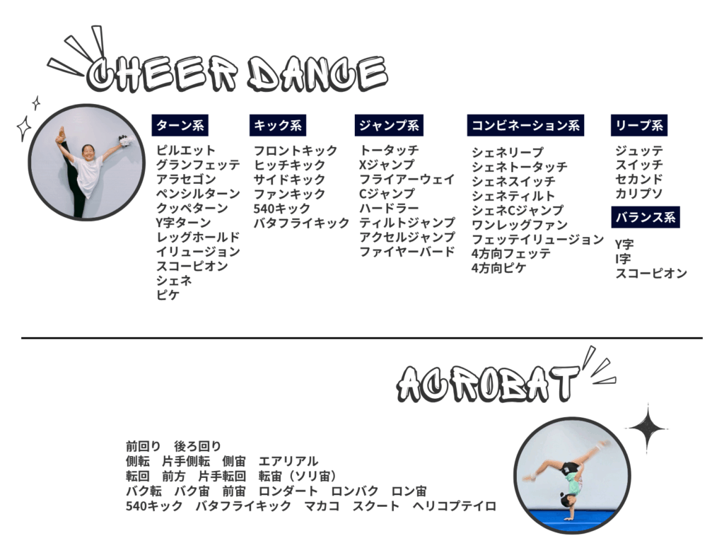 講師ごとに対応できる技が異なります、詳しくは講師紹介をご確認ください。