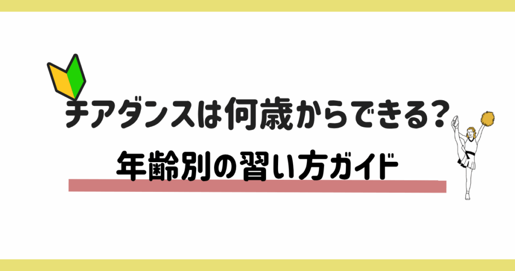 チアダンスは何歳から始められる?年齢別の習い方ガイド 「チアダンスって何歳から始められるの?」そんな質問をよくいただきます。結論から言うと、3歳〜大人までいつからでもOK! ここでは、年齢別の特徴と始め方を紹介します。 幼児(3〜6歳)|まずは... -